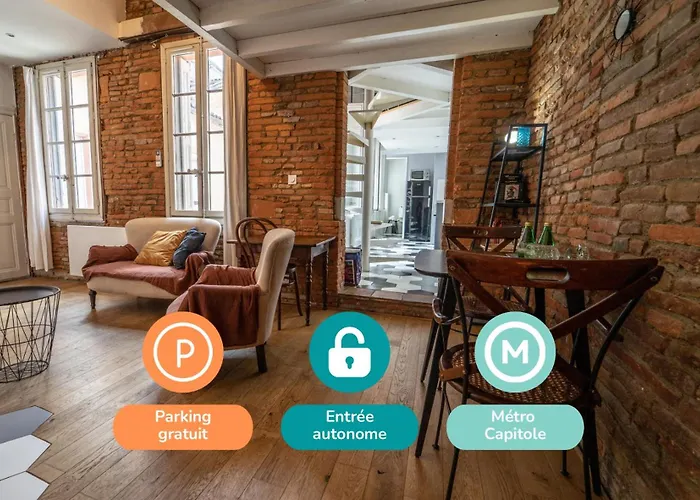 Le domicile de 45 m² est niché dans le quartier "Capitole" à Toulouse, à proximité immédiate du Quai de la Daurade. La résidence est situé à 150 m de la Garonne et à 350 m de la station de métro Esquirol. Le Jardin Compans-Caffarelli est à 20 minutes à pied.